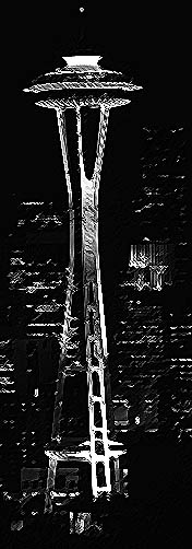 | Die Space Needle, Seattles Wahrzeichen, macht die nächtliche Skyline einmalig und unverwechselbar. Egal von welchem Ende der Stadt, die Space Needle ist fast immer zu sehen. |